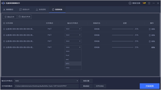 支持音频剪切、音频提取、音频转换
